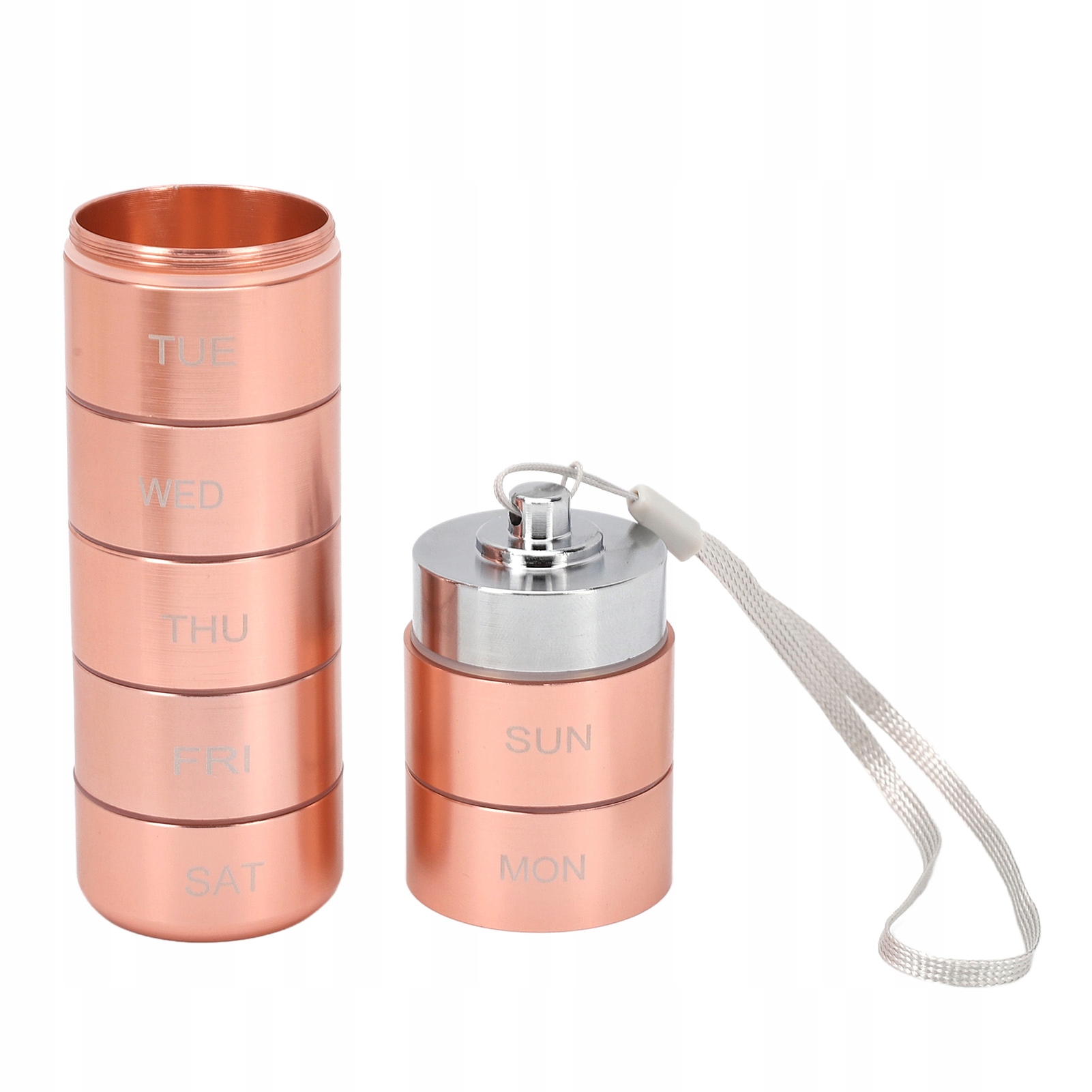 Портативна водонепроникна металева коробка для таблеток із алюмінієвого сплаву зі шнурком із рожевого золота на 7 днів.