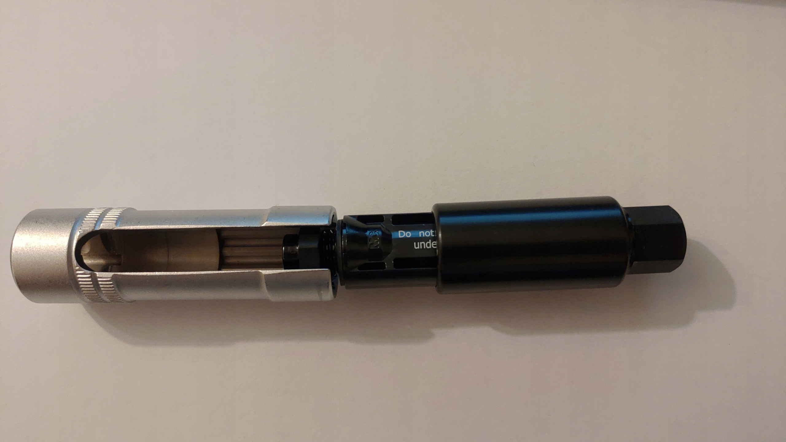 Гайковий ключ має спеціальний отвір для кабелю. З іншого боку ключа також є отвір для кріплення його до тріскачки.