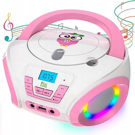⭐TinyGeeks Tunes: програвач компакт-дисків для дитячої дискотеки з входом для навушників | RGB-підсвічування + FM-радіо⭐