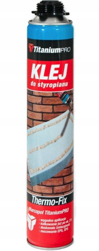 thermo-fix-це однокомпонентний поліуретановий клей, призначений для приклеювання теплоізоляційної обшивки на поверхнях будівельних перегородків. Екструдована XPS в ізоляції працює під час термомодернізації будівель. Термо-фіксський клей також може бути приклеєним EPS або XPS в периферичній теплоізоляції до поверхні фундаменту, покритого водопроізовою на основі асфальту. Лист тарілки. У випадку периферичної ізоляції основи пластини клею, застосовуючи щонайменше 4 вертикальні нитки шириною близько 3 см для підтримки рівних між ними відстані. Використання поліуретану клею значно знижує навантаження, збільшуючи темп теплоізоляційної пластини.