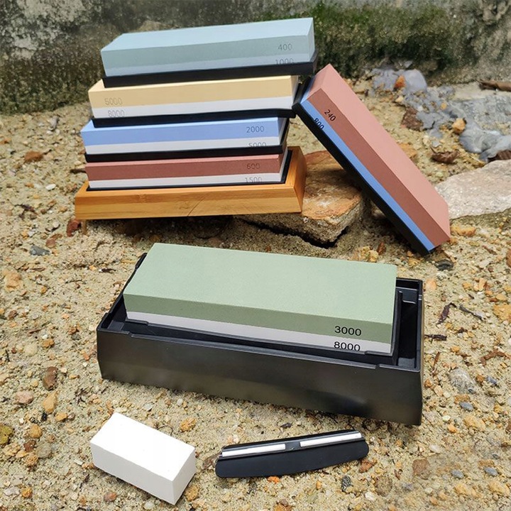 Що нижче значення, наприклад 400, то грубіша грануляція. Найвищі значення, наприклад 8000, використовуються для обробки та полірування леза. Точилка дуже проста у використанні та безпечна.