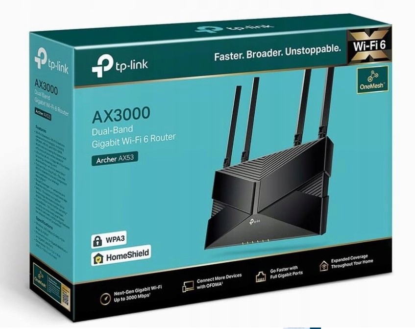 Просматривая «Точка доступа, маршрутизатор TP-Link Archer AX53 маршрутизатор 802.11AX (Wi-Fi 6)», вы можете быть уверены, что данный товар из каталога «Маршрутизаторы WiFi и Access Pointy» будет доставлен из Польши и проверен на целостность. В цене товара, указанной на сайте, учтена доставка из Польши. Внимание!!! Товары для Евросоюза, согласно законодательству стран Евросоюза, могут отличаться упаковкой или наполнением.
