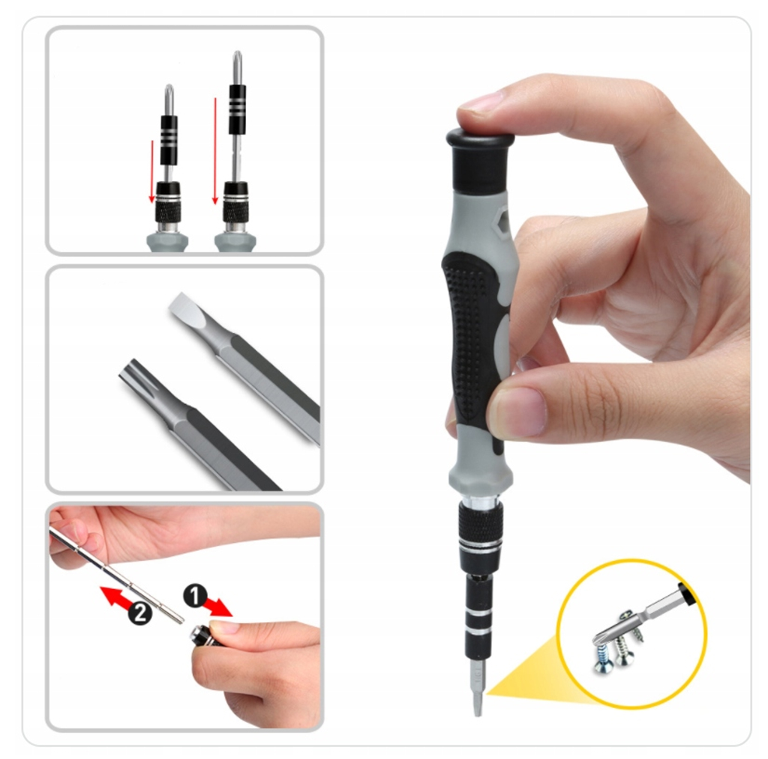 - ✅ У наш набір входять прецизійні викрутки різних розмірів, що дозволяє адаптувати інструмент до конкретних завдань.
