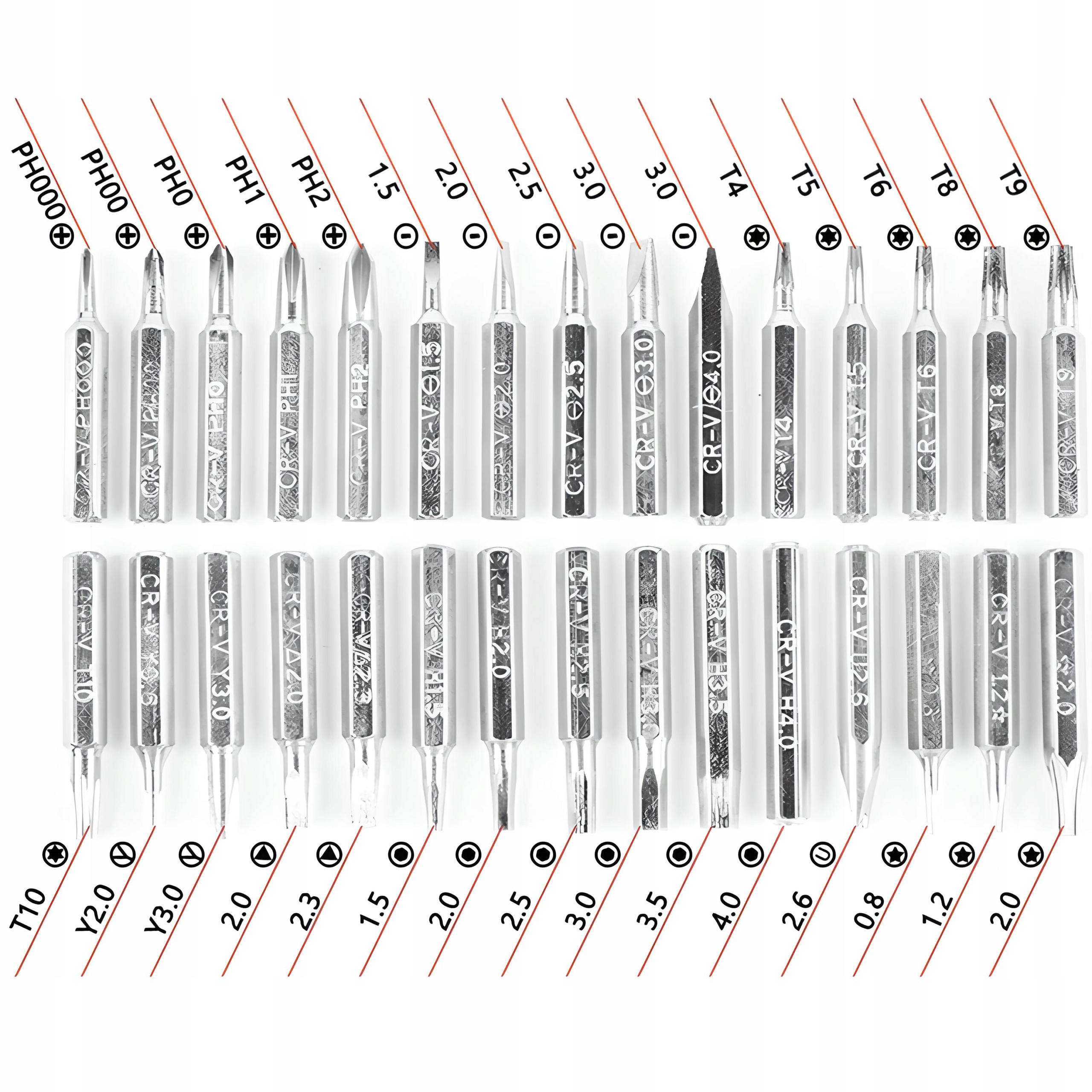 - Набір, що складається з 32 елементів, який замінить переважну більшість звичайних викруток