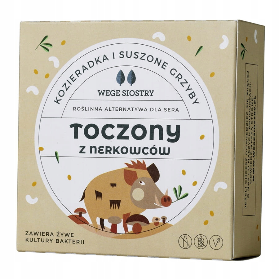 Особливий вершковий сир із горіхів кешью, ферментованих живими бактеріальними культурами. 100% рослинний/веганський продукт. Надзвичайний сир. Добірні, здорові, висушені відразу після збору, гриби з Тухольського лісу, ароматний пажитник і ферментовані горіхи кешью створюють оригінальний, дуже сильний смак умамі. Цей сир є вдалим поєднанням польського та східного смаків.