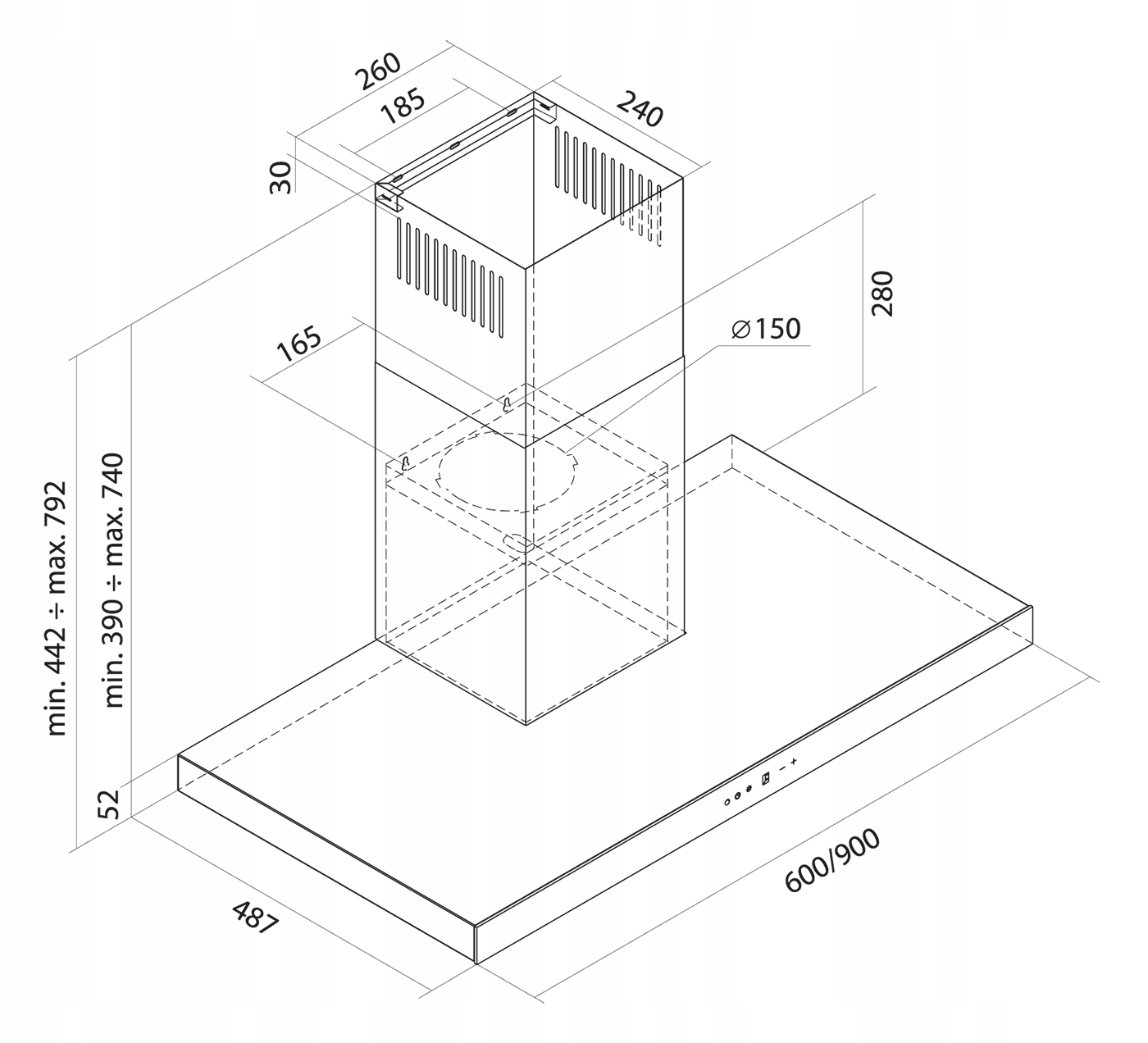 - Вага 90 см: витяжка 12,10 кг | ковпак з упаковкою 14,85 кг