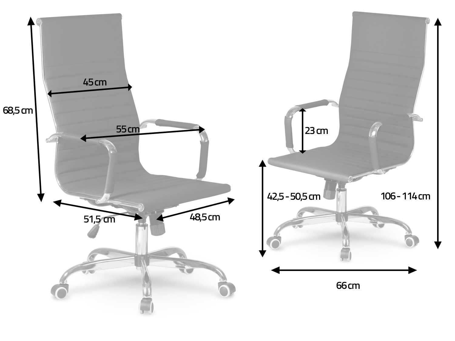 - Високе крісло з профільними та хромованими елементами. Високо розпізнає Токіо Ротарі -крісло для оптимального вибору. Позиція під час інтенсивної роботи та в моменти розслаблення.