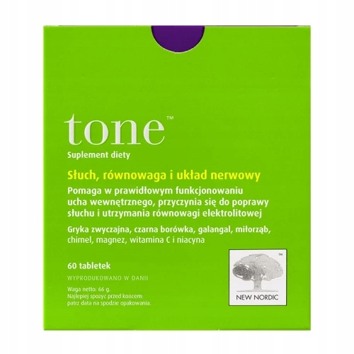 Тон - це дієтична добавка у формі таблеток, що містить композицію біологічно активних макромінералів і екстрактів трав, що забезпечують організм фітонутрієнтами, що підтримують правильний слух і зменшують шум у вухах. Продукт призначений для дорослих.