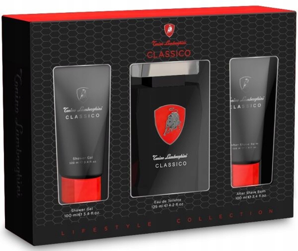 Набір ароматів Tonino Lamborghini Classico, який включає 125 мл туалетної води, 100 мл бальзаму після гоління та 100 мл гелю для душу.