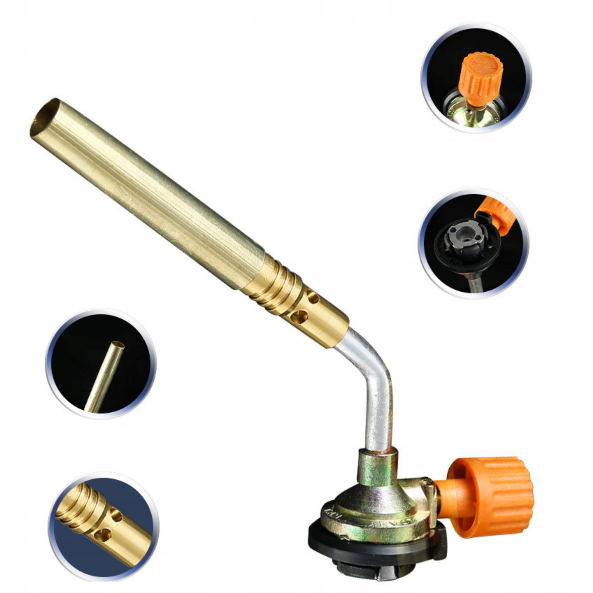 ✅ Пальник простий у використанні, виготовлений із пластику та металу. Має металевий клапан і ручку регулювання потужності полум’я.