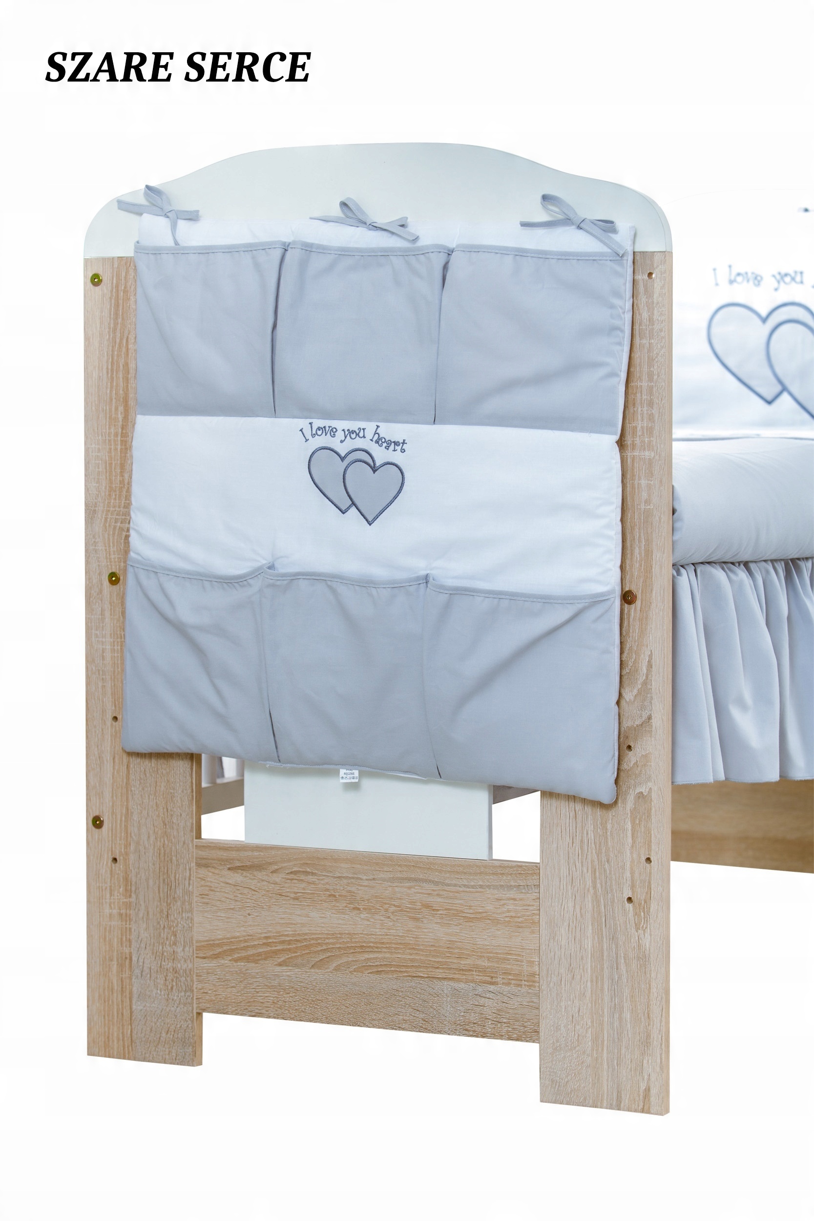 Тримач для ліжечка має кілька кишень різного розміру - в нього можна помістити не тільки дрібниці, а й більші речі - наприклад, підгузки.
