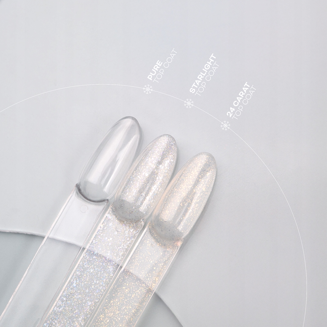 - Якщо ви віддаєте перевагу легшим і більш рідким продуктам, Pure Top Coat саме для вас. Він має меншу консистенцію, ніж наші бестселери (Elastic і The Best), що полегшує нанесення тонких шарів і мінімізує ризик розсипання кутикули.