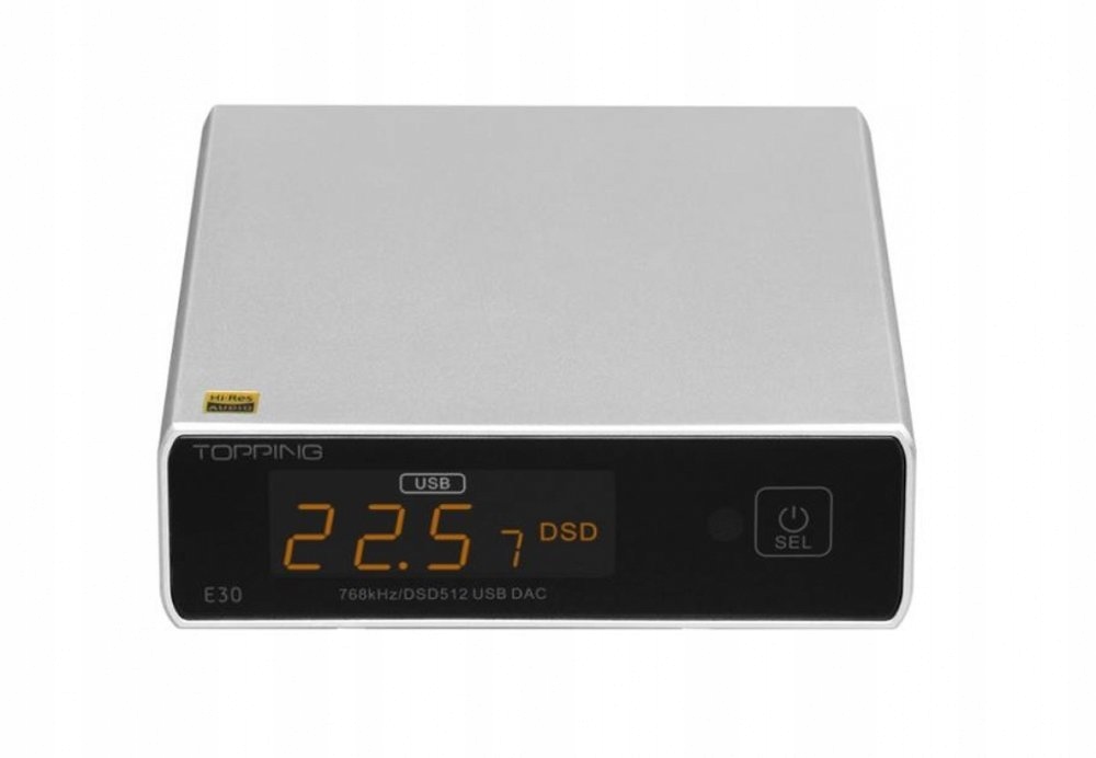 e30 - це цифровий перетворювач - аналоговий DAC бренду Topping. Пристрій обладнаний перетворювачем AKM AK4493 та системою XMOS XU208. E30 підтримує DSD512 та PCM 768 кГц 32 -бітні файли. На задній панелі пристрою ми знайдемо коаксіальний та оптичний вхід, а також роз'єм USB та аналогові роз'єми 2xRCA.