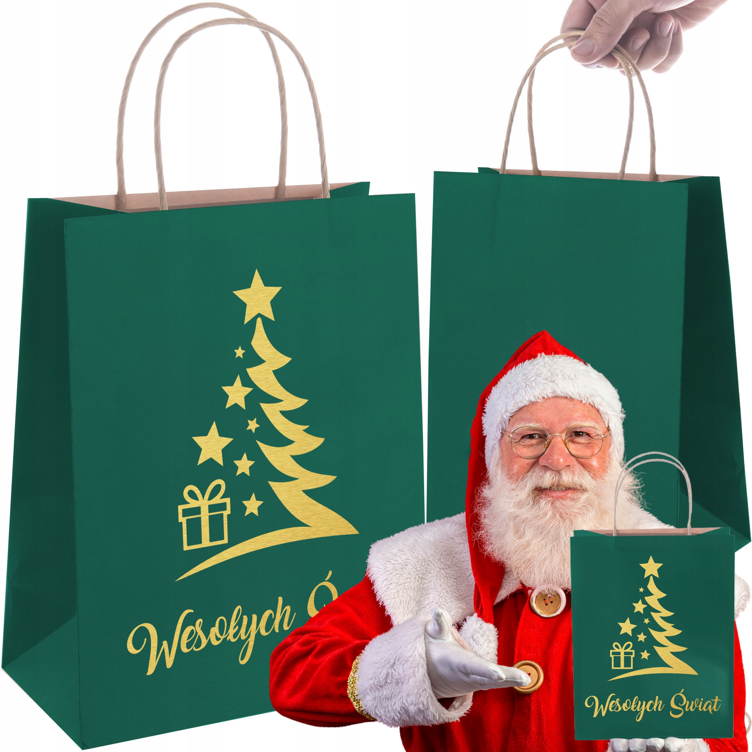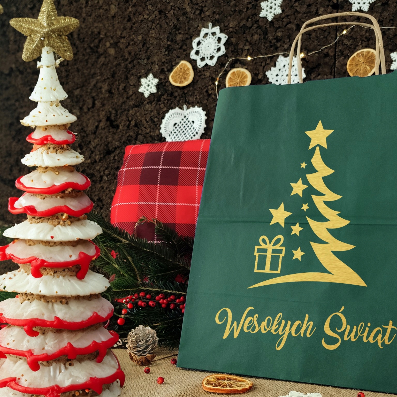 TORBA PAPIEROWA ŚWIĄTECZNA ZIELONA A4 240/100/320 1 SZT TOREBKA EKO ŚWIĘTA