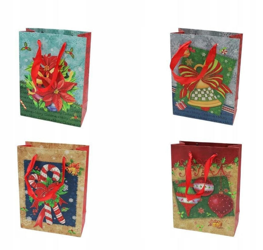 TORBA PREZENTOWA ŚWIĄTECZNA BROKAT 23,5X17,5X8 MIX