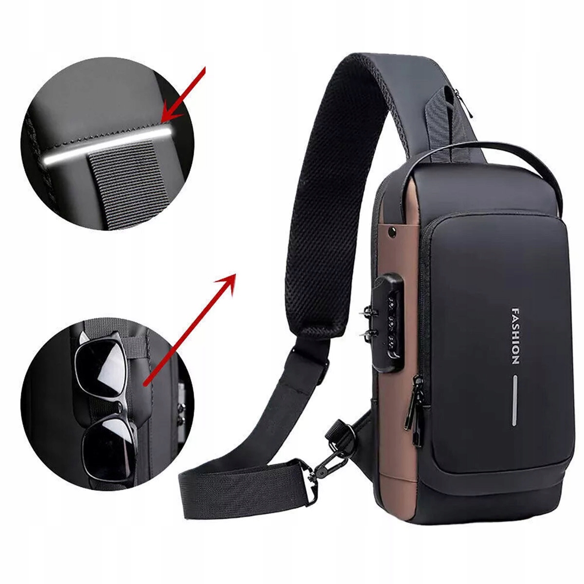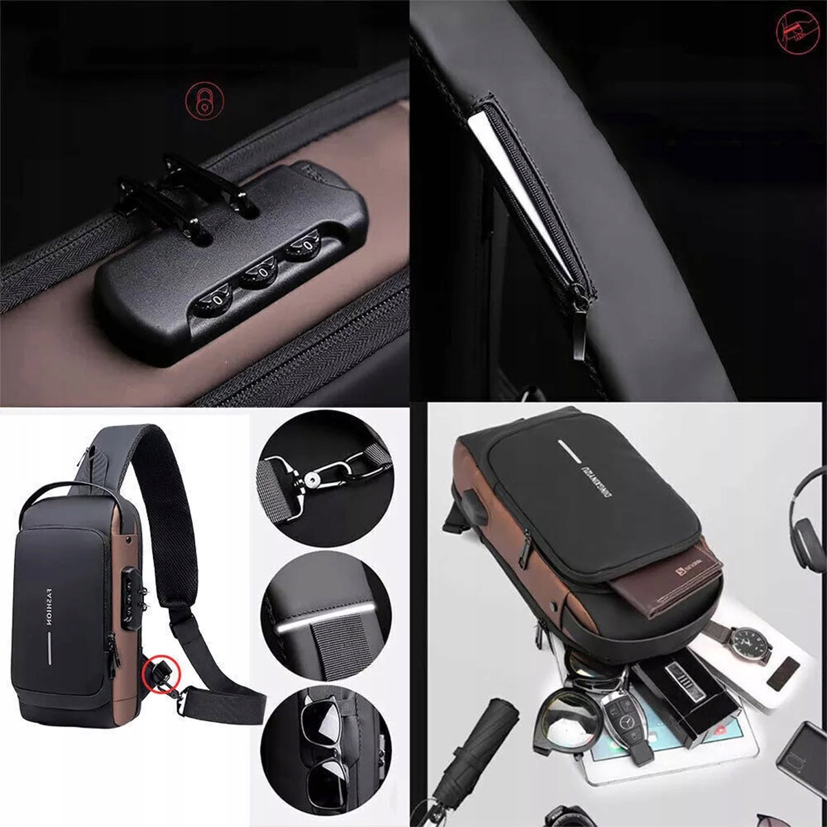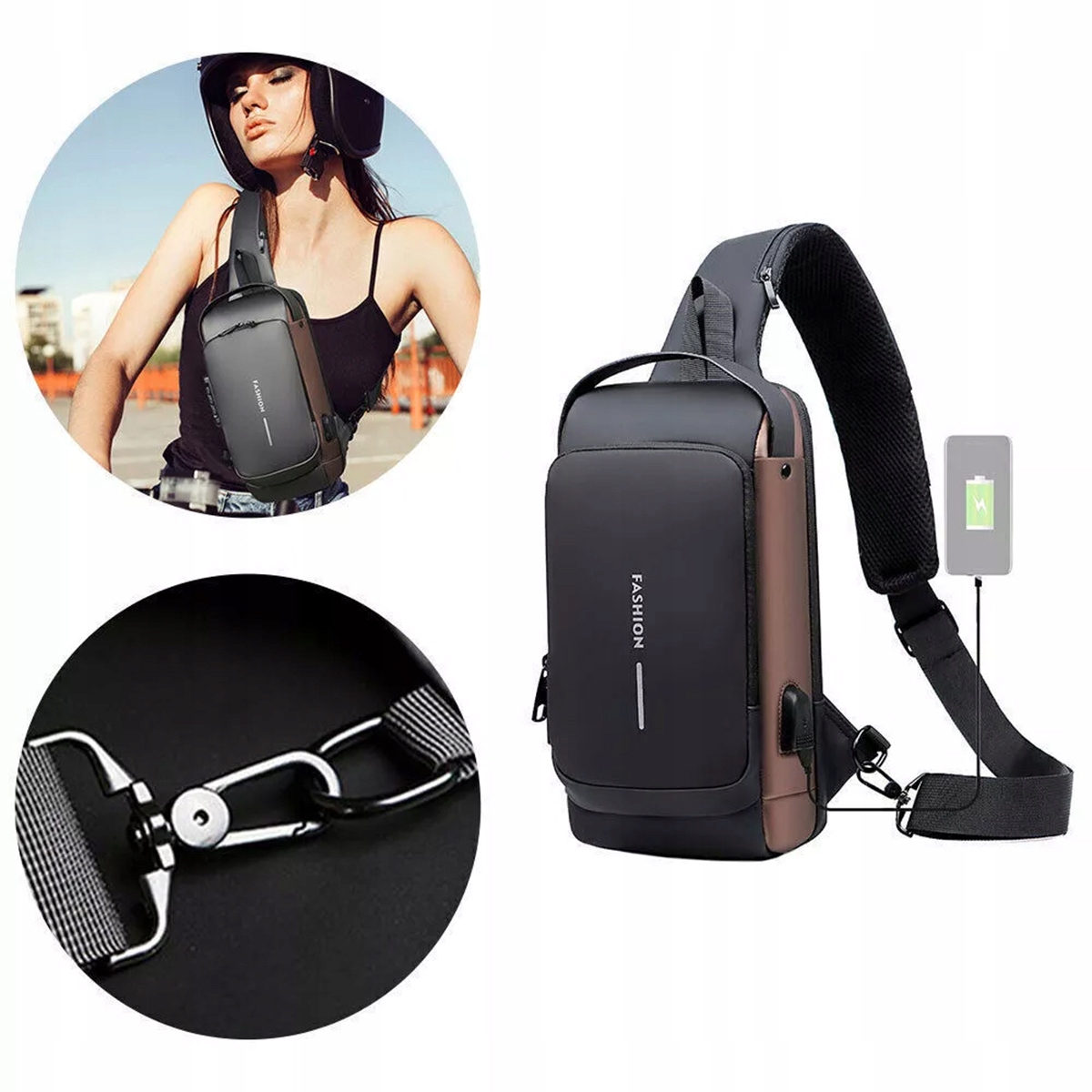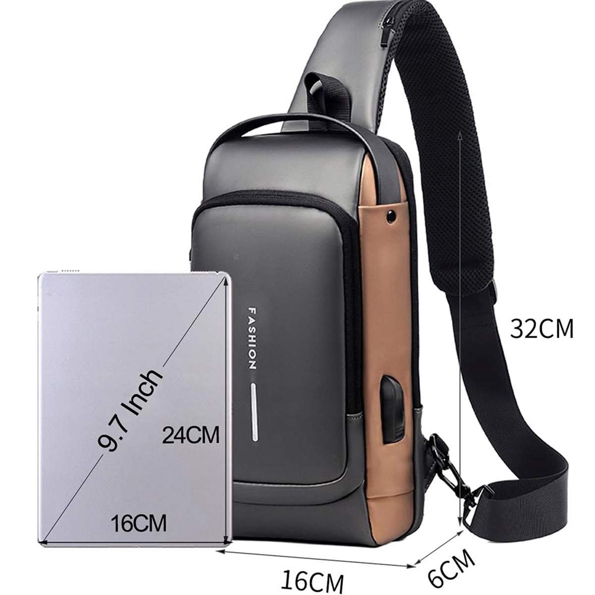 TORBA SASZETKA NERKA MĘSKA PLECAK NA RAMIĘ PLECAK ANTYKRADZIEŻOWY USB