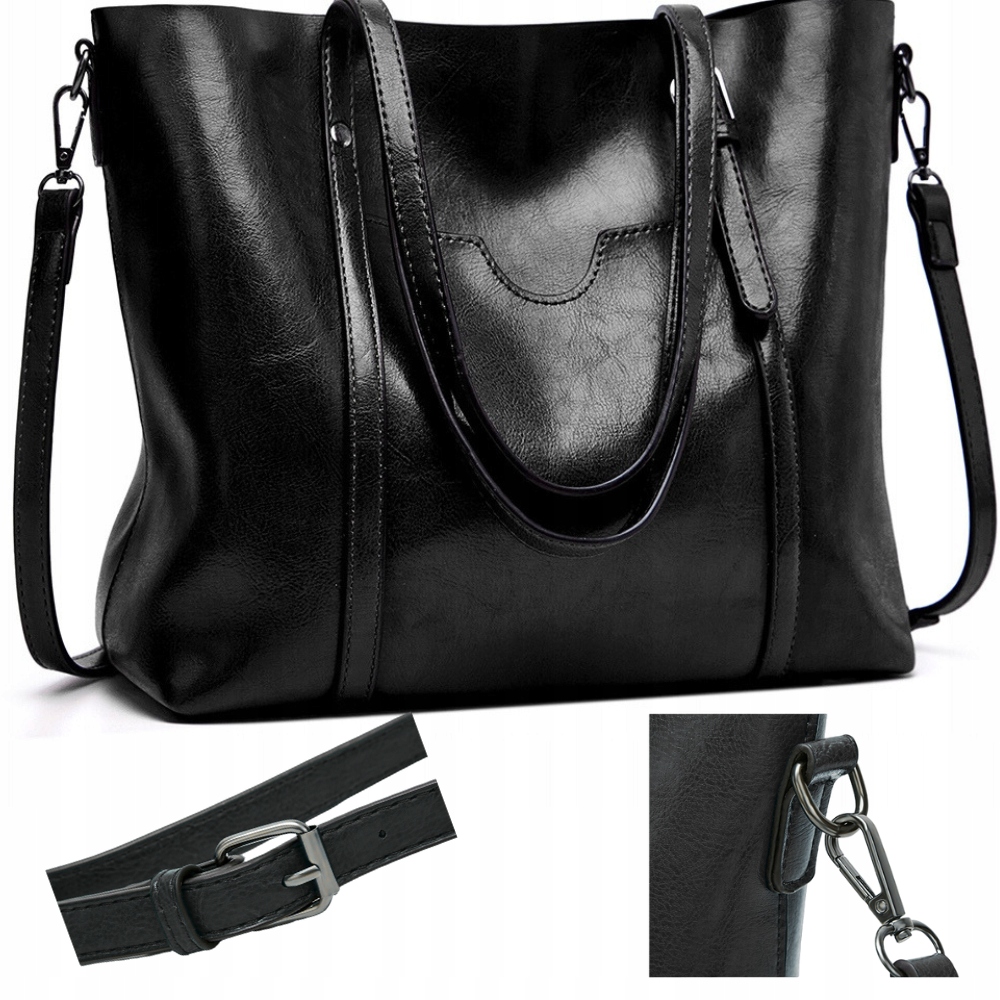 TOREBKA DAMSKA CZARNA DUŻA MIEJSKA TORBA NA RAMIE MODNA SKÓRZANA EKOSKÓRA
