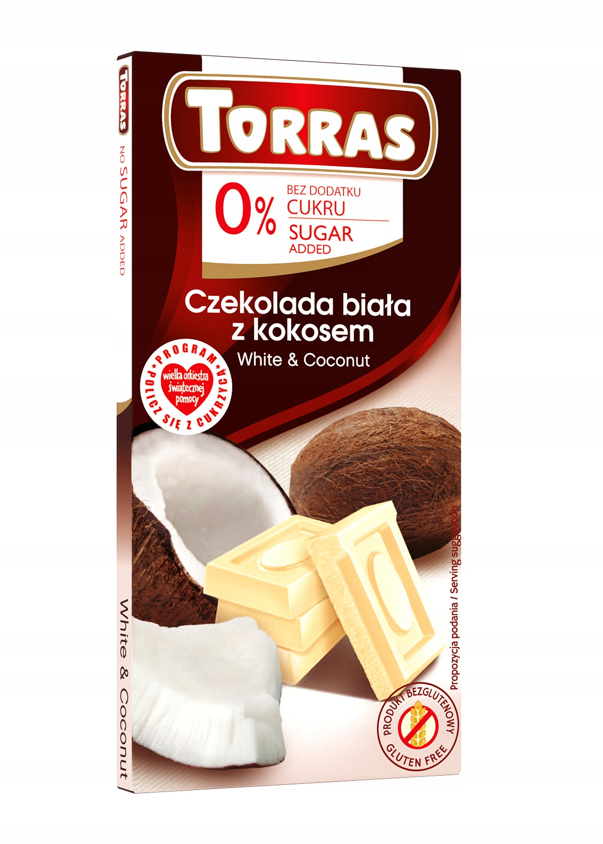 білий шоколад Torras з кокосовим горіхом без додавання цукру, без глютену