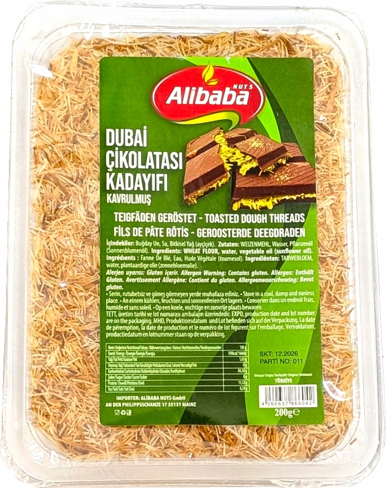 Кадайіф Торт (katifi) - це тонкі нитки філо -тортів з легкою та хрусткою текстурою. Це традиційний інгредієнт на Близькому Сході, який ідеально підходить для приготування розкішного дубського шоколаду .