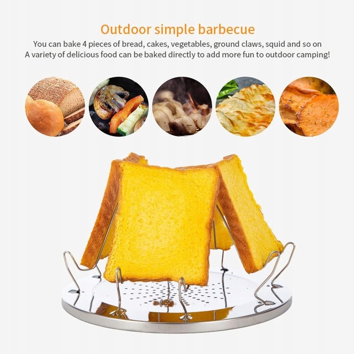 Портативний: кемпінговий тостер має складану підставку, яка дозволяє підтримувати відповідну відстань між хлібом, у той же час запобігає випіканню та підгорянню хліба, його зручно зберігати та економити місце.