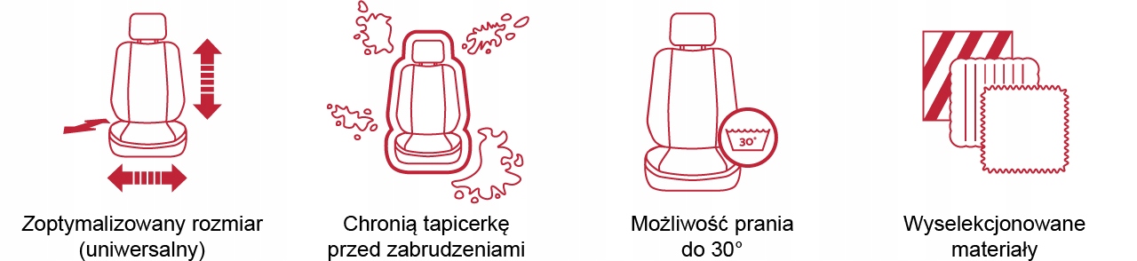 Наші настройки покривають покривають сидіння повністю, як передню частину, боки, і задня частина сидінь на 100% покриті матеріалом. Завдяки цьому рішення, оригінальна оббивка крісел захищена від руйнування та бруду в найбільш оголених місцях.