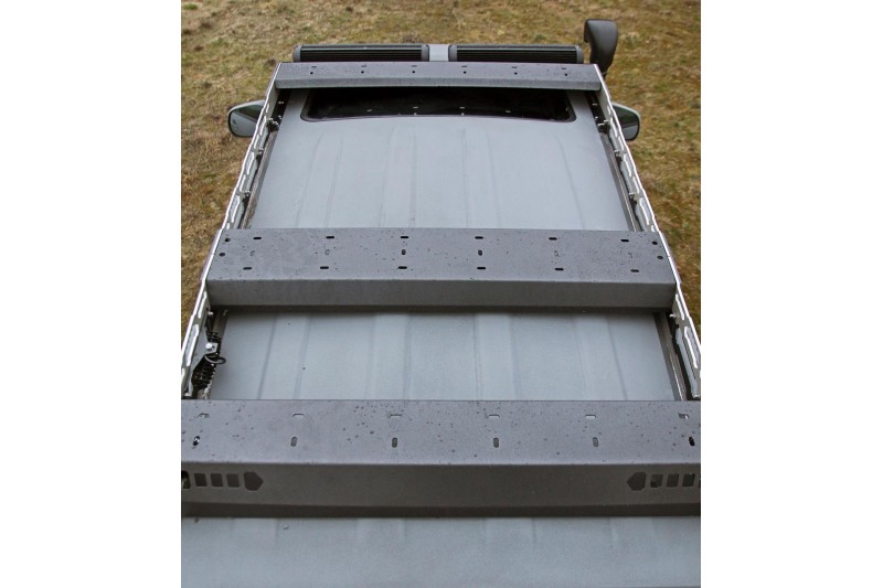 багажник покритий епоксидним підшерстом, нанесеним у техніку фарбування порошком та структурну фарбу в графітному кольорі, а також деякі елементи в INOX. Ціна призначена для готової платформи з виділеними кріпленнями