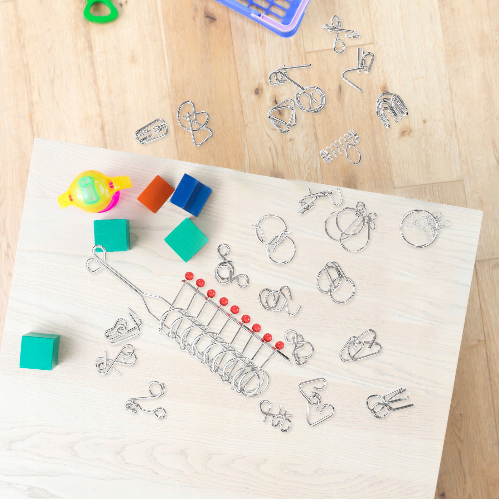 Покладіть у свій домашній позачасовий веселощі та виклики, пов'язані з навчанням мозку завдяки цьому 25pcs набору дев'яти кільця . Розроблений у дусі традиційних китайських головоломок, цей набір пропонує години захоплюючої забави, при цьому заточуючи логіку, спритність та творчість . Ідеально як подарунок, інструмент навчання або заспокійливий стрес, ці головоломки є і смішними, і значущими.