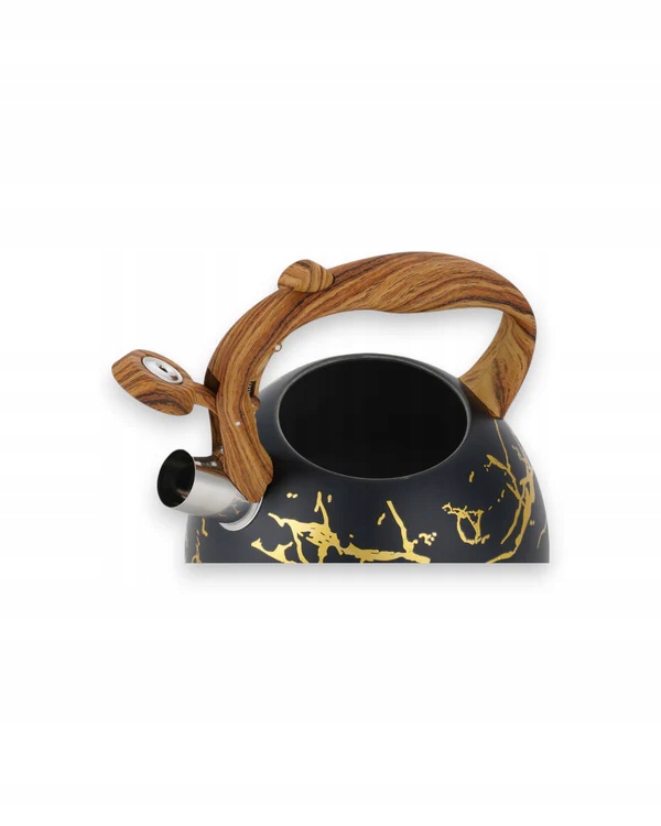2,8 л сталевого чайника з свистом, елегантним чорним кольором з дерев’яною ручкою, сумісною з індукцією та газом