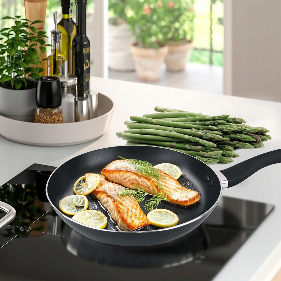 Якісна сковорода MAESTRO з гранітним покриттям чудово зберігає та проводить тепло. Сковорода оснащена індукційним дном, тому підходить для всіх типів плит. Крім того, він оснащений стійкою і термостійкою ручкою. Крім того, він простий у догляді та використанні, його можна мити в посудомийній машині.
