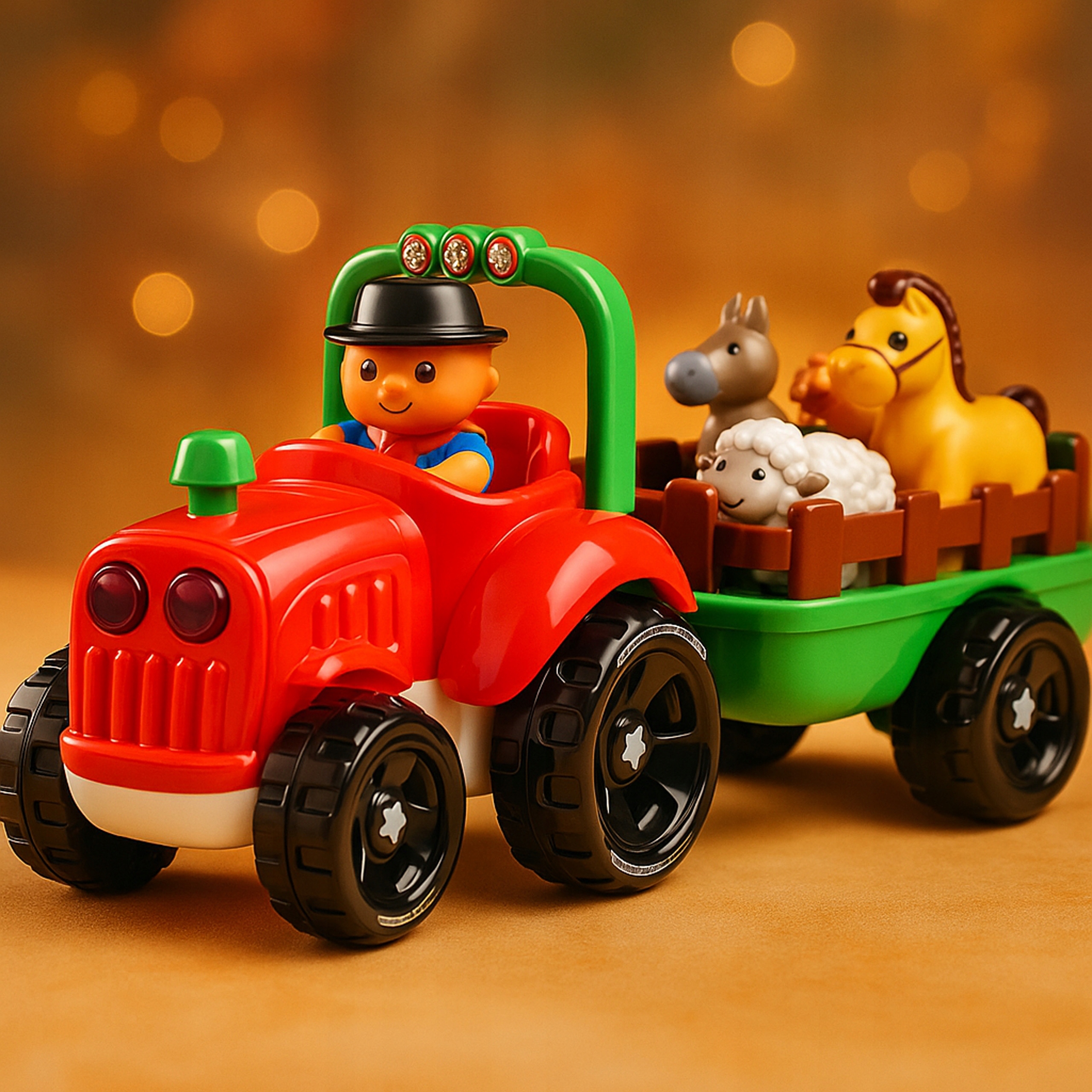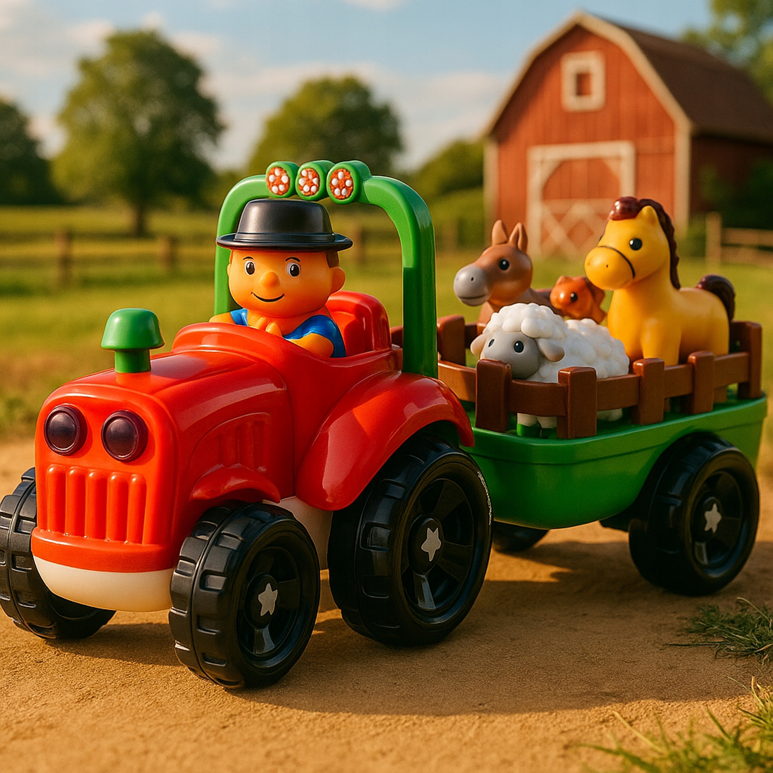 Цей трактор із причепом і фігурками фермерів і тварин — це гарантія нескінченних розваг. Веселі мелодії, реалістичні звуки та інтерактивні функції дозволять кожній дитині відчути себе справжнім господарем на власній фермі.