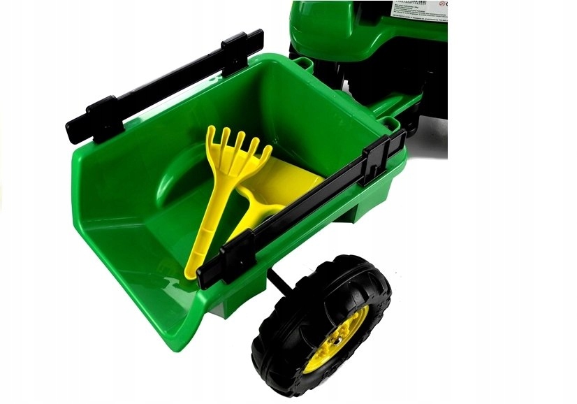 Педальний транспортний засіб містить рухомий ковш і причіп із двома аксесуарами для піску. Ручне відро дуже просте у використанні - його потрібно піднімати за виступаючі ручки, а потім зачерпувати, переміщати і опускати обраний вантаж. У передній частині совка є спеціальні гачки, які потрібно з'єднати з ручками, що виступають з-під керма, щоб ложка не заважала під час гри. Вантажопідйомність відчепленого від тягача причепа дозволяє перевозити всі скарби вашого малюка. У ній можна носити всі аксесуари для гри в пісочниці.