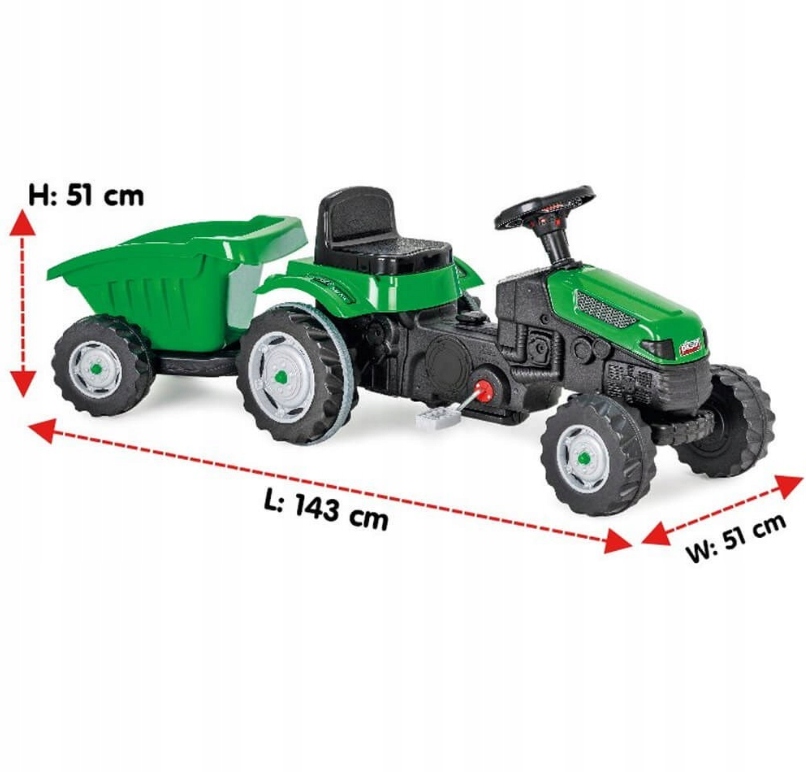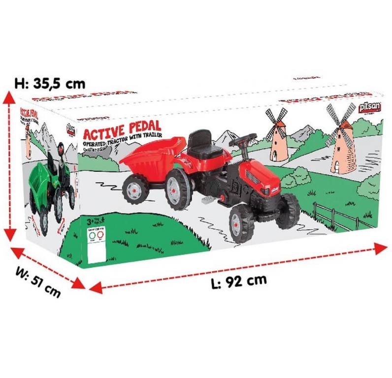 Дитячий трактор PILSAN червоного кольору - ідеальний транспортний засіб, який забезпечить вашій дитині стабільність і легкість у керуванні. Виготовлена з високоякісних матеріалів, стійких до механічних пошкоджень і стирання. Завдяки точному відтворенню деталей справжніх тракторів у вашого малюка буде створюватися враження, що він керує справжнім транспортним засобом.Водіння на педальному автомобілі дозволяє дитині розвивати м'язи ніг, і в той же час забезпечує повний контроль і необмежений веселощі. Габарити трактора 95 х 51 х 51 см, а причепа 53 х 36 х 46 см. Розміри упаковки: 92 см x 51 см x 36 см, вага продукту — 7,8 кг.
