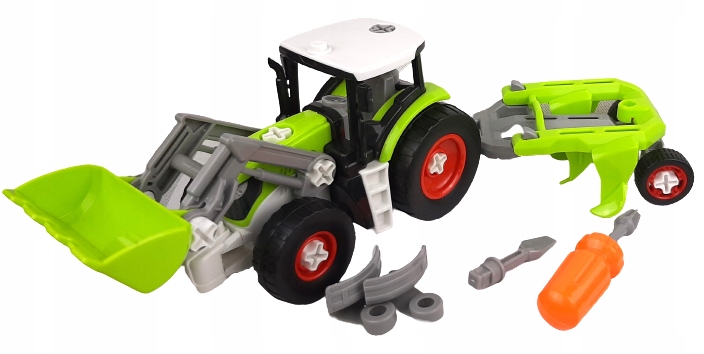 Трактор-поворотник — чудовий набір для маленького фермера, який також любить повозитися. У набір входить викрутка з двома наконечниками: плоским і хрестовим, щоб дитина могла розібрати трактор на частини - в тому числі: відкрутити колеса, причіп або ківш. Трактор виготовлений з якісного пластику.