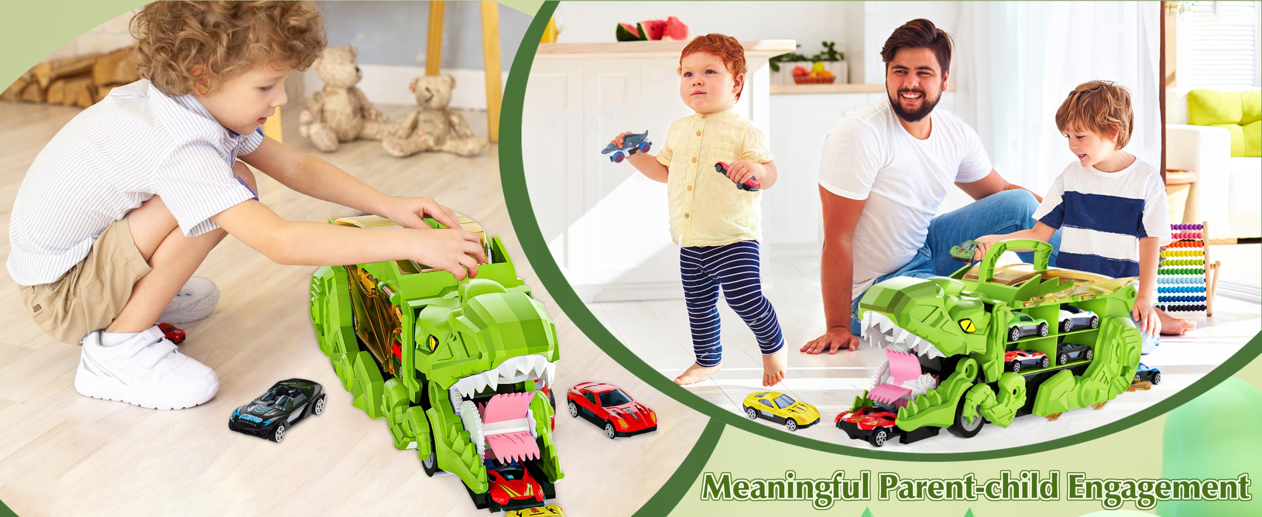 ✔ [Перетворення динозаврів] Іграшки-перевізники динозаврів бувають двох форм і можуть легко обертатися від гігантської вантажівки-монстра до створеного Тиранозавра Рекса без монтажних пристроїв. Його функцією може бути подвійний ряд пандусів, створюючи захоплюючі перегони для маленьких хлопчиків і дівчаток, щоб розкрити їхню творчість і уяву.