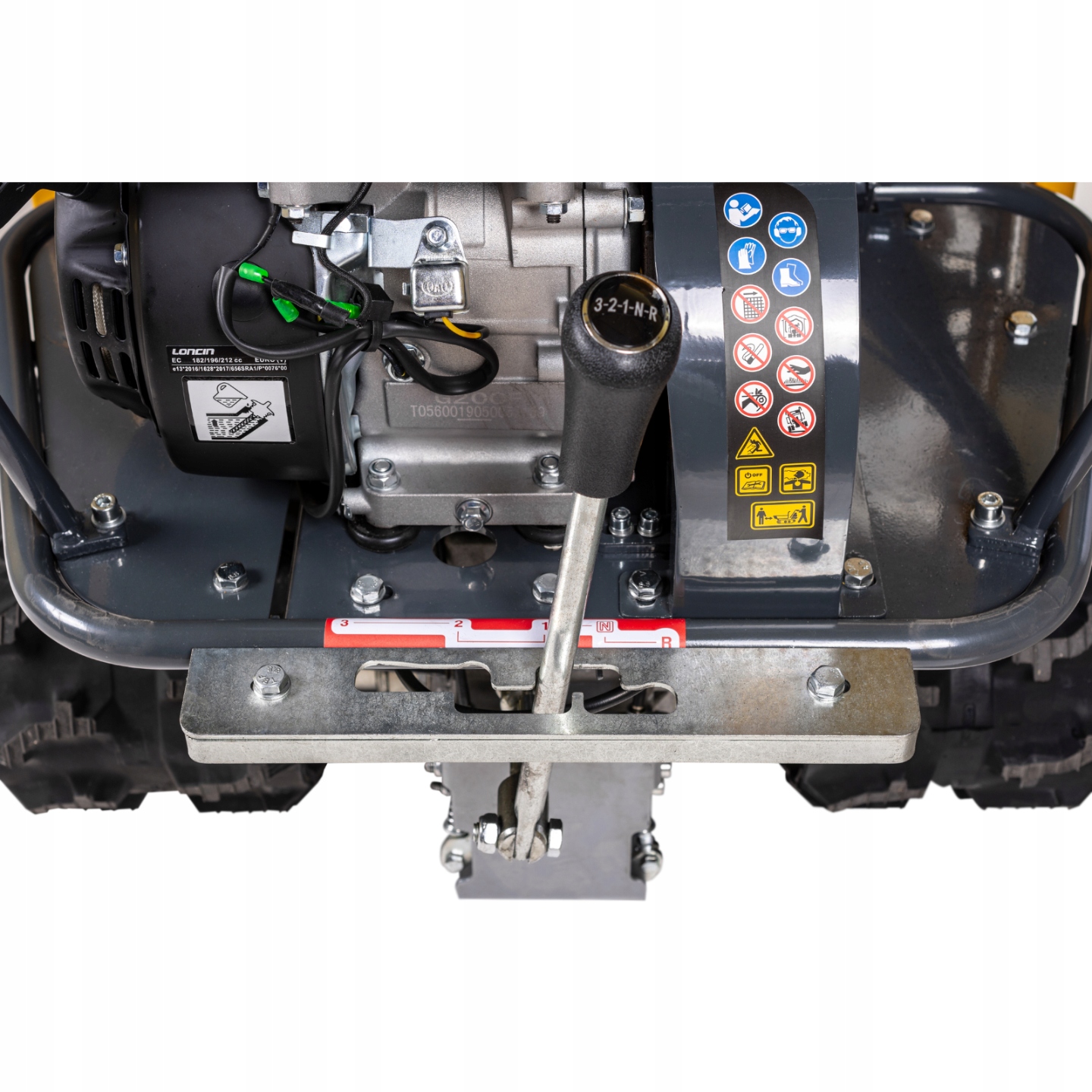 Чотиритактний двигун з об'ємом 196 см3 з механічною передача з 3 швидкостями вперед а передача реверс дозволяє регулювати швидкість відповідно до типу ґрунту та матеріалу, що транспортується