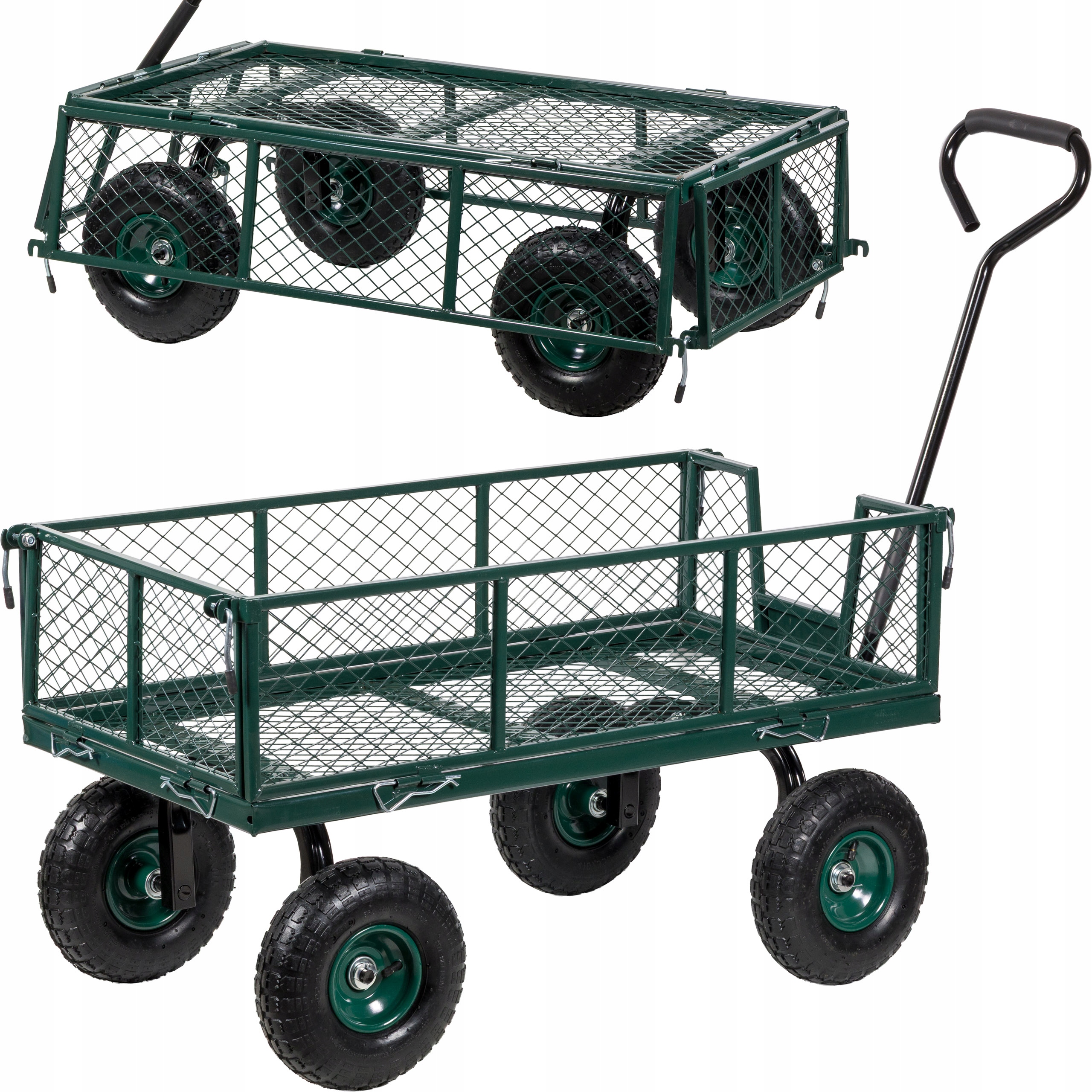 Колекція листя, трави, гілок? А може, мобільний робочий стіл під час посадки? Складні сторони Дозвольте швидко завантажувати та вивантажувати, адаптуючи коляску до ваших потреб.