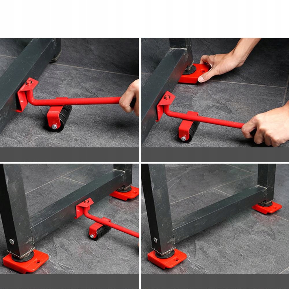 Меблевий транспортний комплект забезпечує безпечне транспортування предметів вагою до 150 кг. Сталевий важіль дозволяє легко піднімати вантаж і безпечно вставляти колодки. Завдяки регульованим накладкам ви можете вільно обертати річ у будь-якому напрямку.
