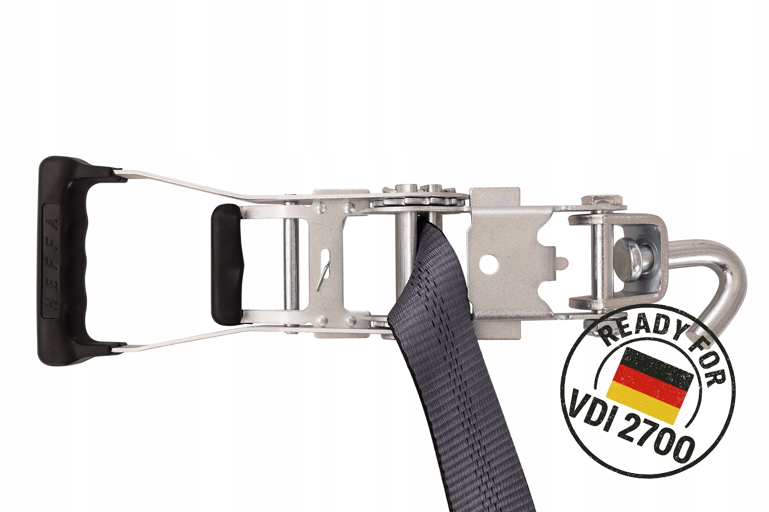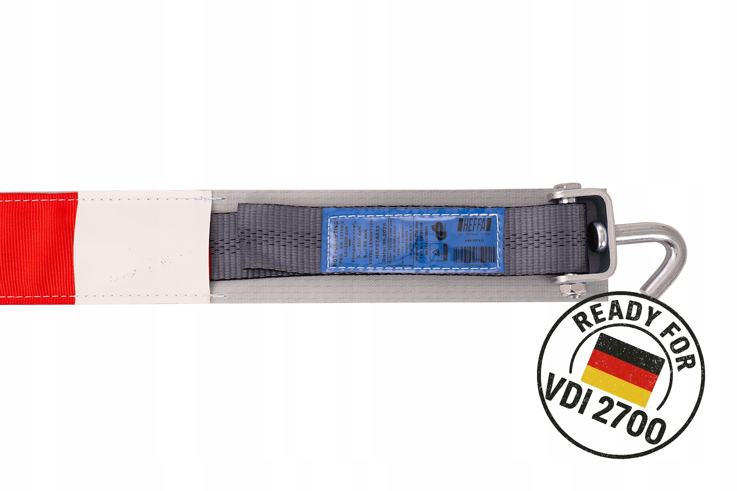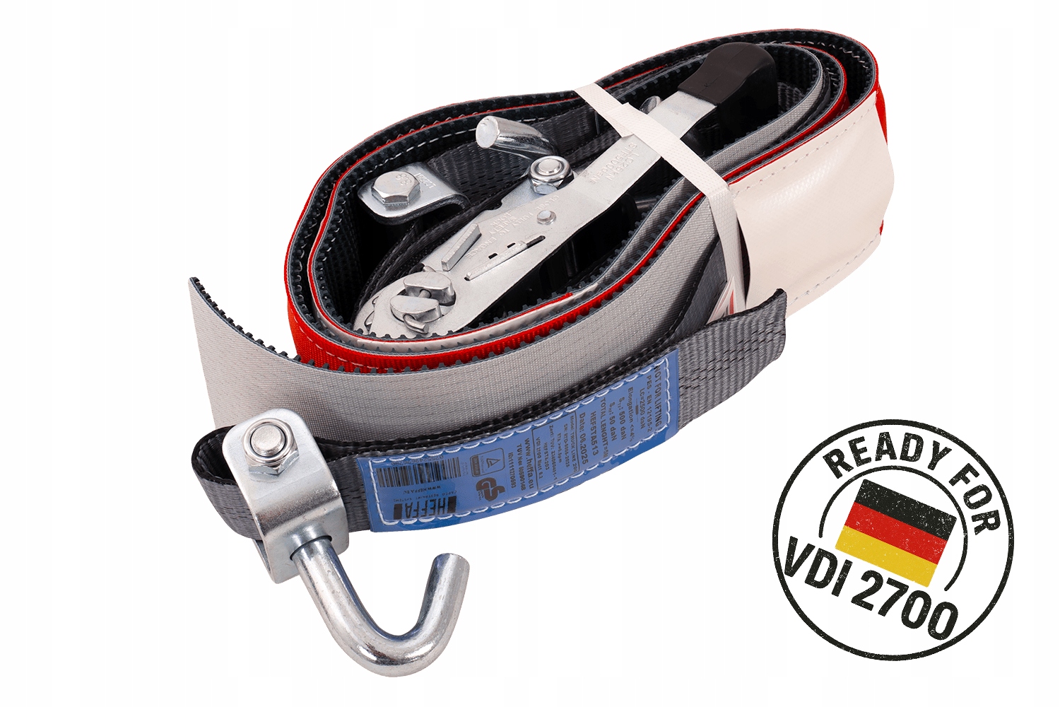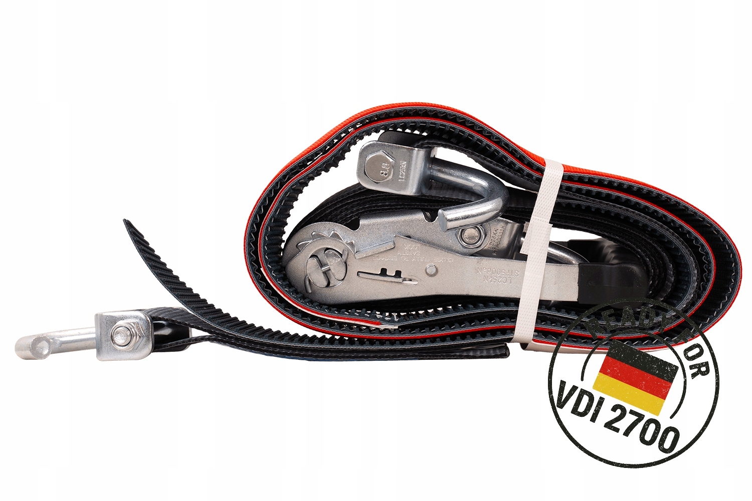 Відповідність VDI 2700 8.1 означає, що ремені відповідають суворим вимогам щодобезпеки, надійності та ефективності фіксації транспортного засобу, що має вирішальне значення для професійних перевезень легкових автомобілів і фургонів. Завдяки цьому користувач може бути впевнений, що використовувана система кріплення відповідає чинним європейським і німецьким стандартам у сфері безпеки дорожнього руху.