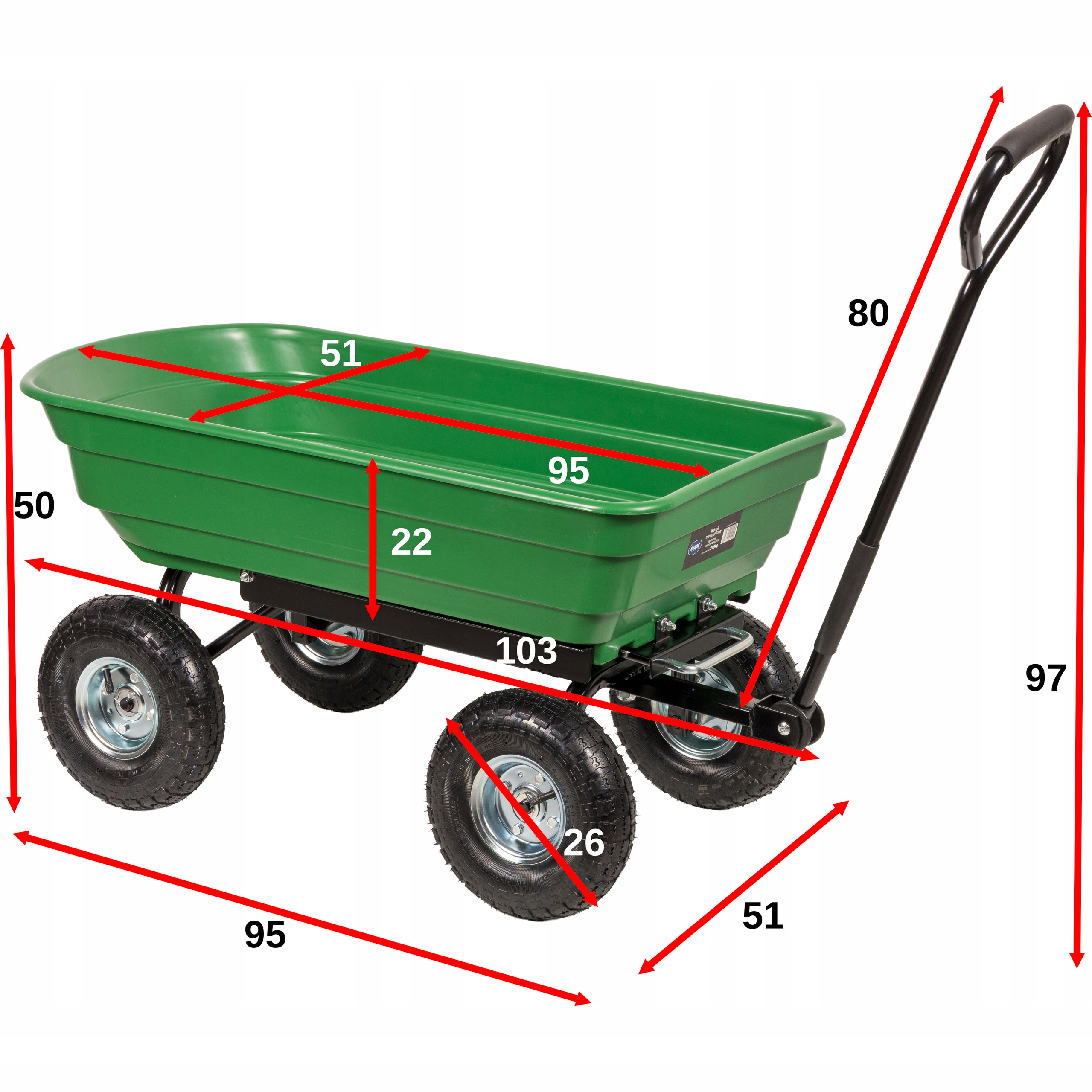 ідеально підходить для транспортування ґрунту, деревини, листя або каменів. Це практичне і суцільне рішення, яке прискорить та сприятиме вашій роботі на ділянці, в саду чи під час ремонту.