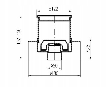 ТРАНА НИЖНЯ ПІДЛОГА DN 50 З РЕШІТКОЮ З НЕРЖАВІЮЧОЇ СТАЛІ
