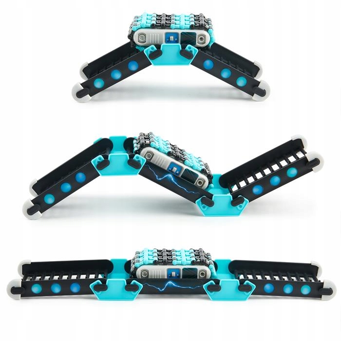 Набір Power Treads Nitro включає не тільки деталі треку в яскравих кольорах, а також абсолютно нові елементи Nitro Climbers, які можна з’єднувати, згинати та розширювати, щоб урізноманітнити перешкоди та виклики, які чекають на ваш автомобіль на гоночному треку. Спробуйте гонки в гору або швидкі спуски з власними конструкціями Nitro, такими як міст, лежачий поліцейський, зигзаг або естакада.