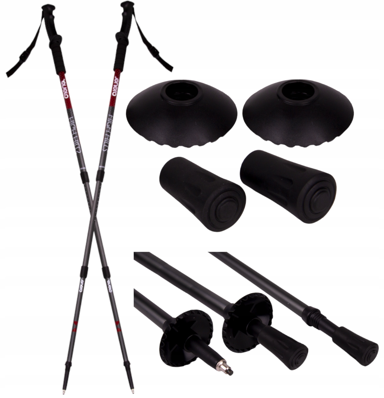 Стовпи HIGH HILLS складаються з трьох частин, поступово розгортаються та оснащені спеціальною системою послідовного блокування, яка гарантує стабільне регулювання довжина палиці та складання їх, що полегшує транспортування та зберігання.