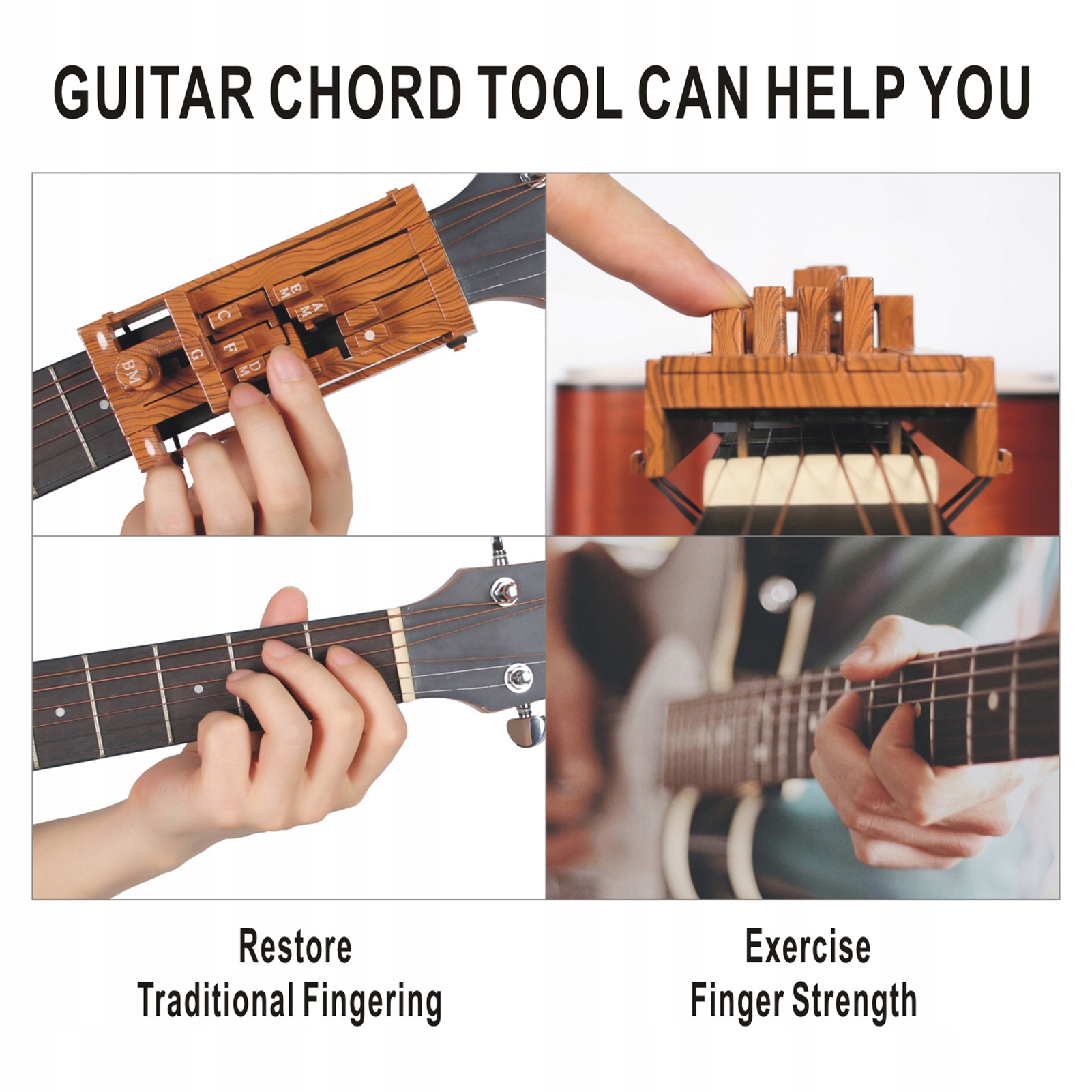 2. 【Безболісне розташування пальців】: хвилюєтеся, що у вас болять пальці під час тренування? Наш помічник акордів для гітари тут, щоб допомогти вам. Використовуючи цей інструмент для акордів, ви зможете уникнути дискомфорту та забезпечити правильну поставу рук. Будь ласка, зверніть увагу, що хоча це допомагає на початкових етапах навчання, регулярні тренування все одно необхідні для розвитку мозолів і зміцнення вашої техніки гри.