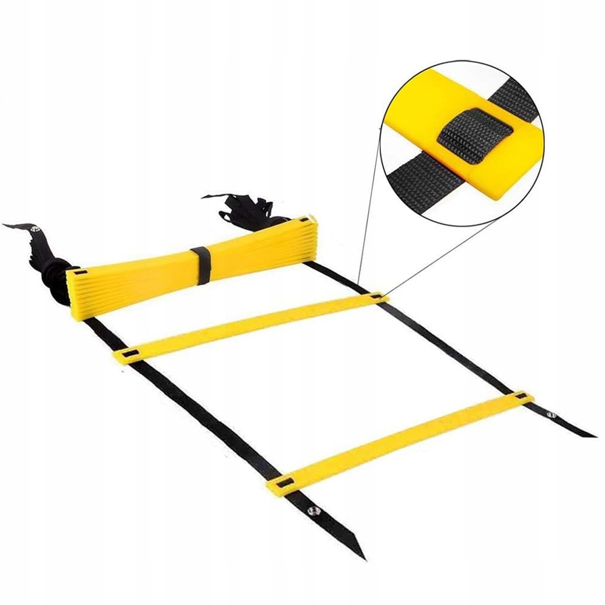 - Драбину можна використовувати для командних та індивідуальних тренувань, а в набір входить сумка для зберігання, яка полегшує транспортування та захищає драбину від розгортання та сплутування з іншим спортивним обладнанням, напр. в багажнику автомобіля.