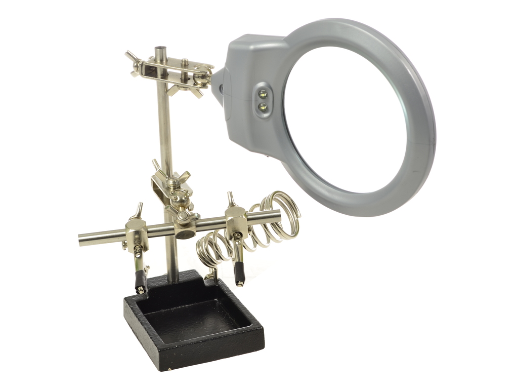 Третя сторона, монтажний тримач із лупою 2x 90 мм і світлодіодним підсвічуванням, а також тримач для спірального паяльника