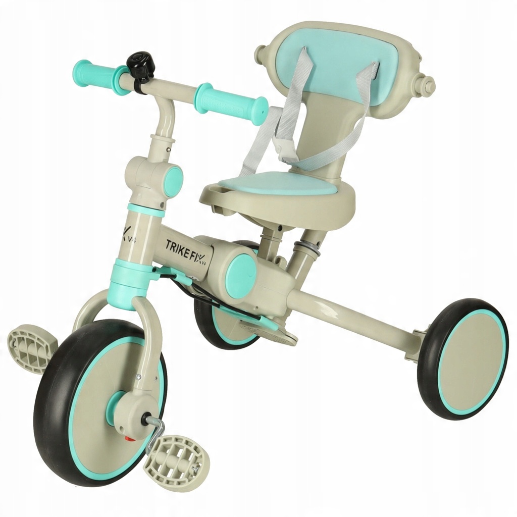Trike Fix v4 Triple Bike 6in1 Grey -Blue Cross -Country Bicycle Ця незвичайна модель буде супроводжувати дитину тривалий час, змінюючись і адаптуючись до нових потреб зростаючої дитини. Він може бути використаний 6 різними способами: - Три -колесо велосипед з дахом та направляючим