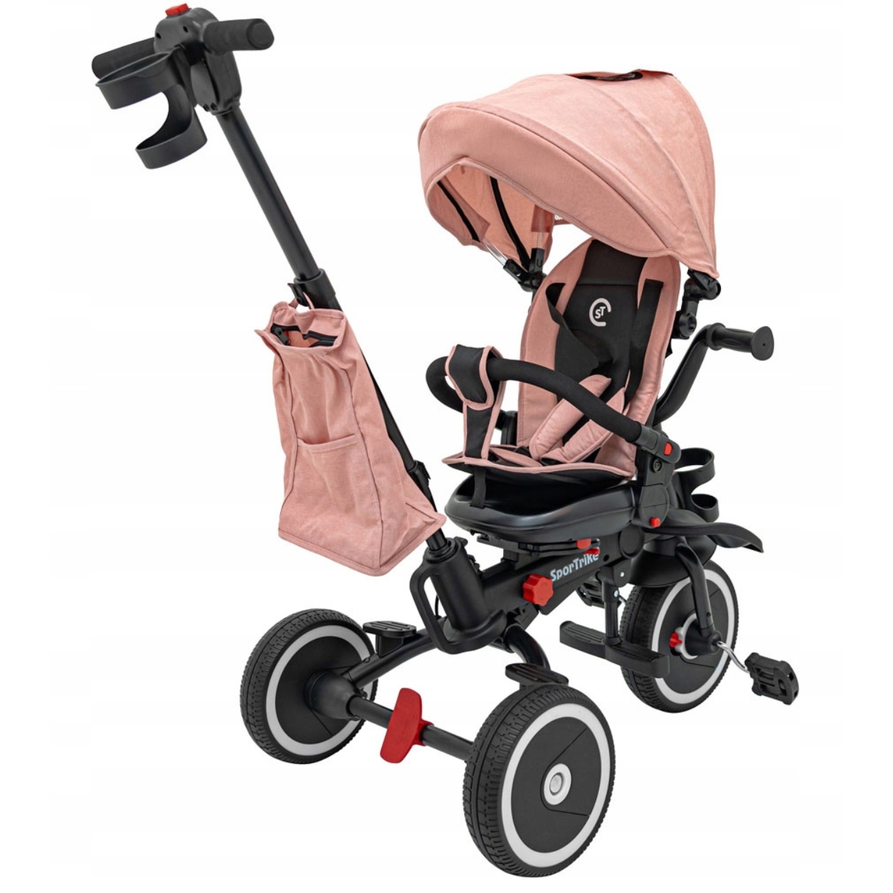 Потрійний велосипед для дітей регульований обертається + рожевий мішок