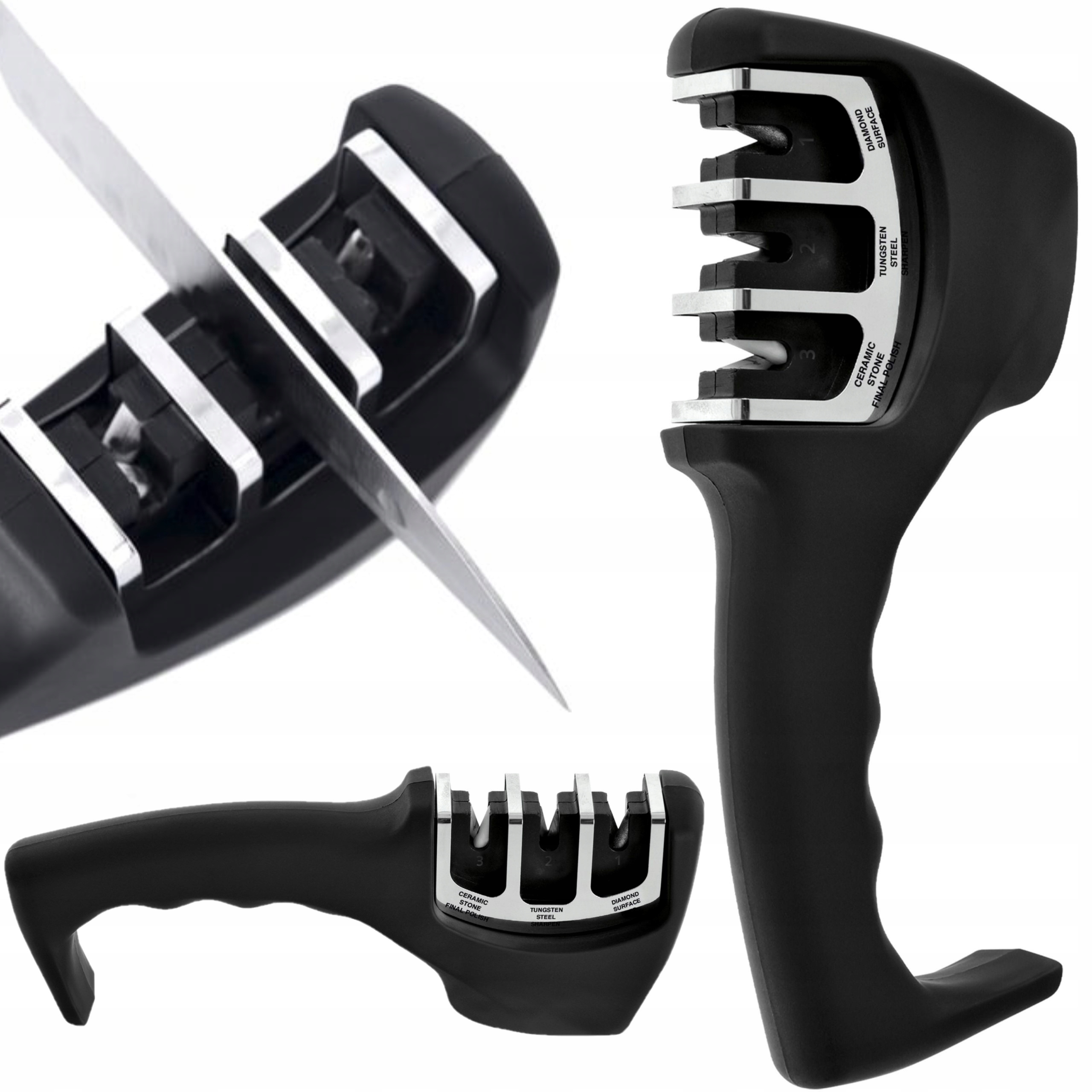 Тупі ножі відійшли в минуле! Завдяки цьому зручному точилка ви можете заточити кухонні ножі за 3 прості кроки. Алмазна поверхня готує ніж до правильного заточування, вольфрам відновлює форму літери V,