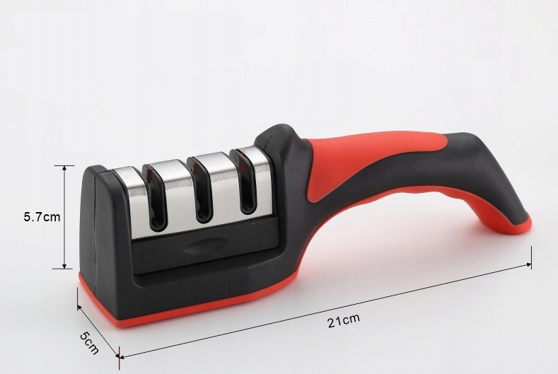 Наша точилка характеризується високою якістю виготовлення. Пластиковий корпус легкий і зручний. Основа проти ковзання та рукоятка, що не ковзає, забезпечують стабільний хват, що гарантує безпеку протягом усього процесу заточування ножа. Ви швидко і без проблем повернете своїм ножам колишню гостроту!