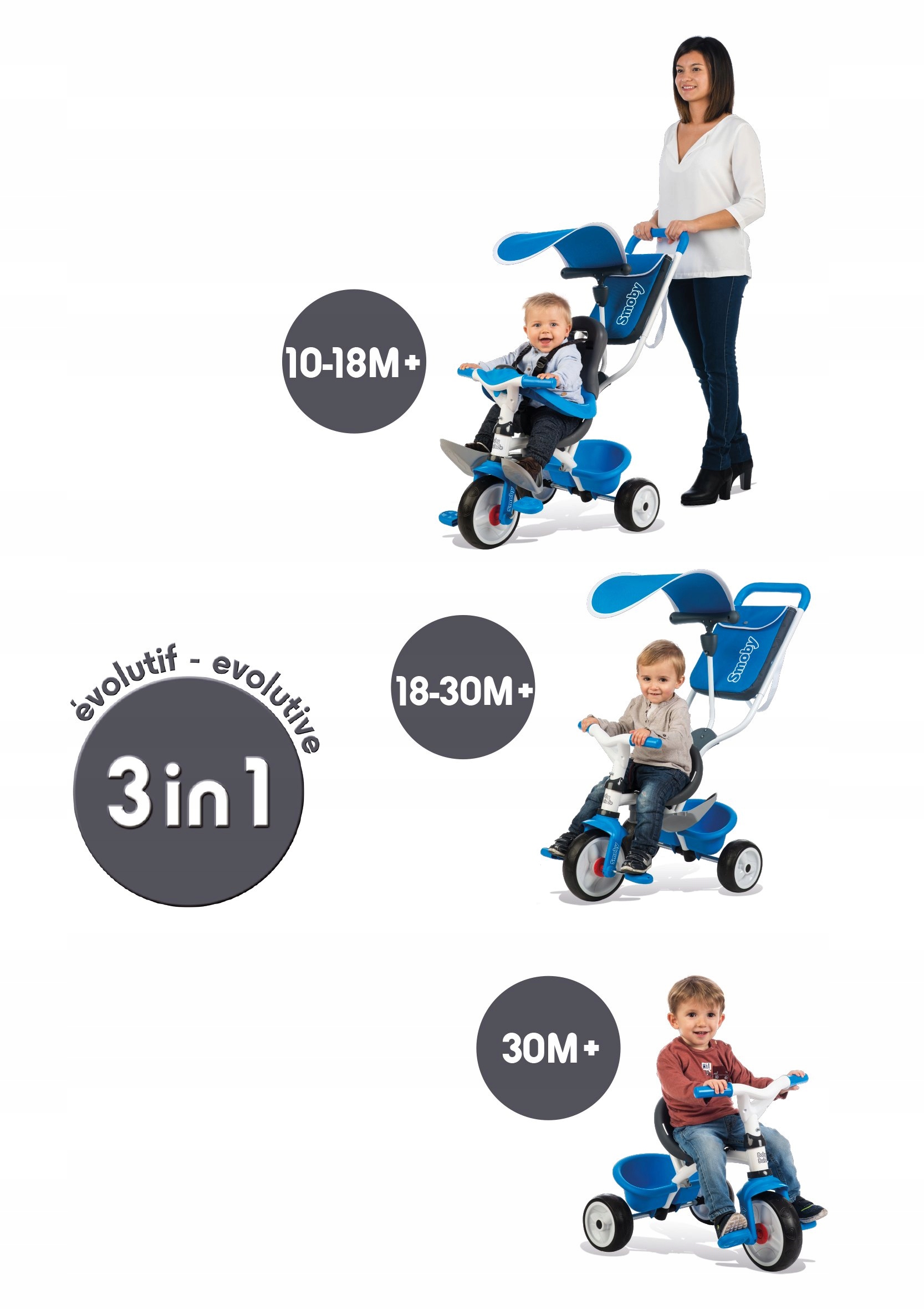 Smoby Триколісний велосипед 3в1 BABY BALADE безшумні колеса